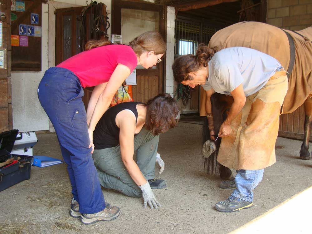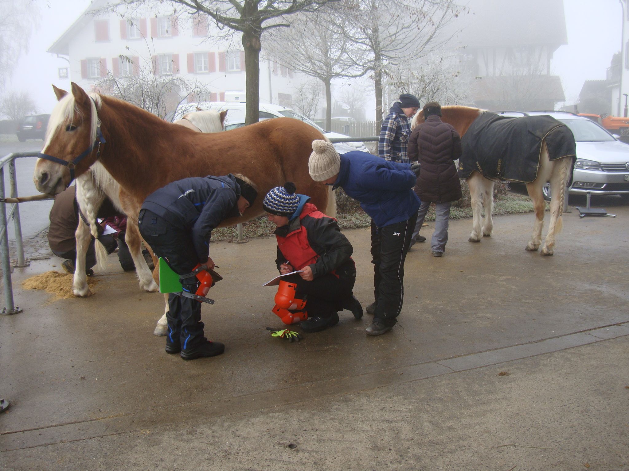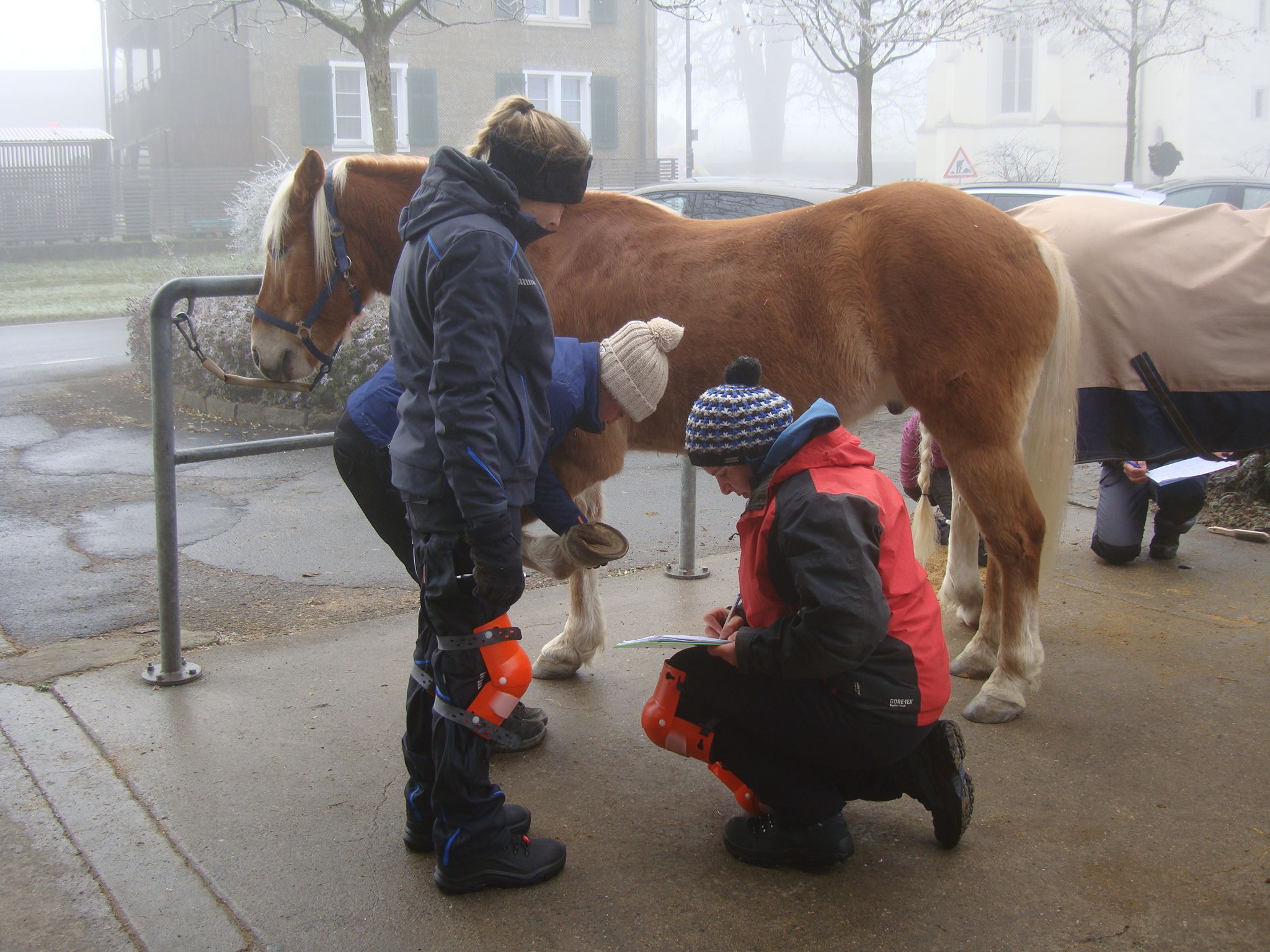 | Hufe befunden, Belastungssituation während der Standbeinphase | Angehende Huforthopäden/innen bei der Arbeit |