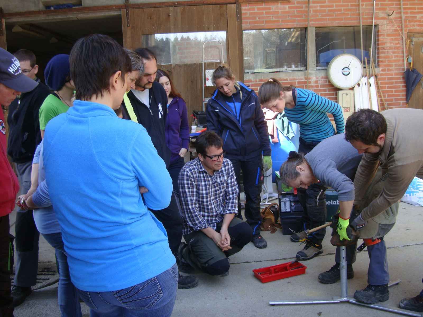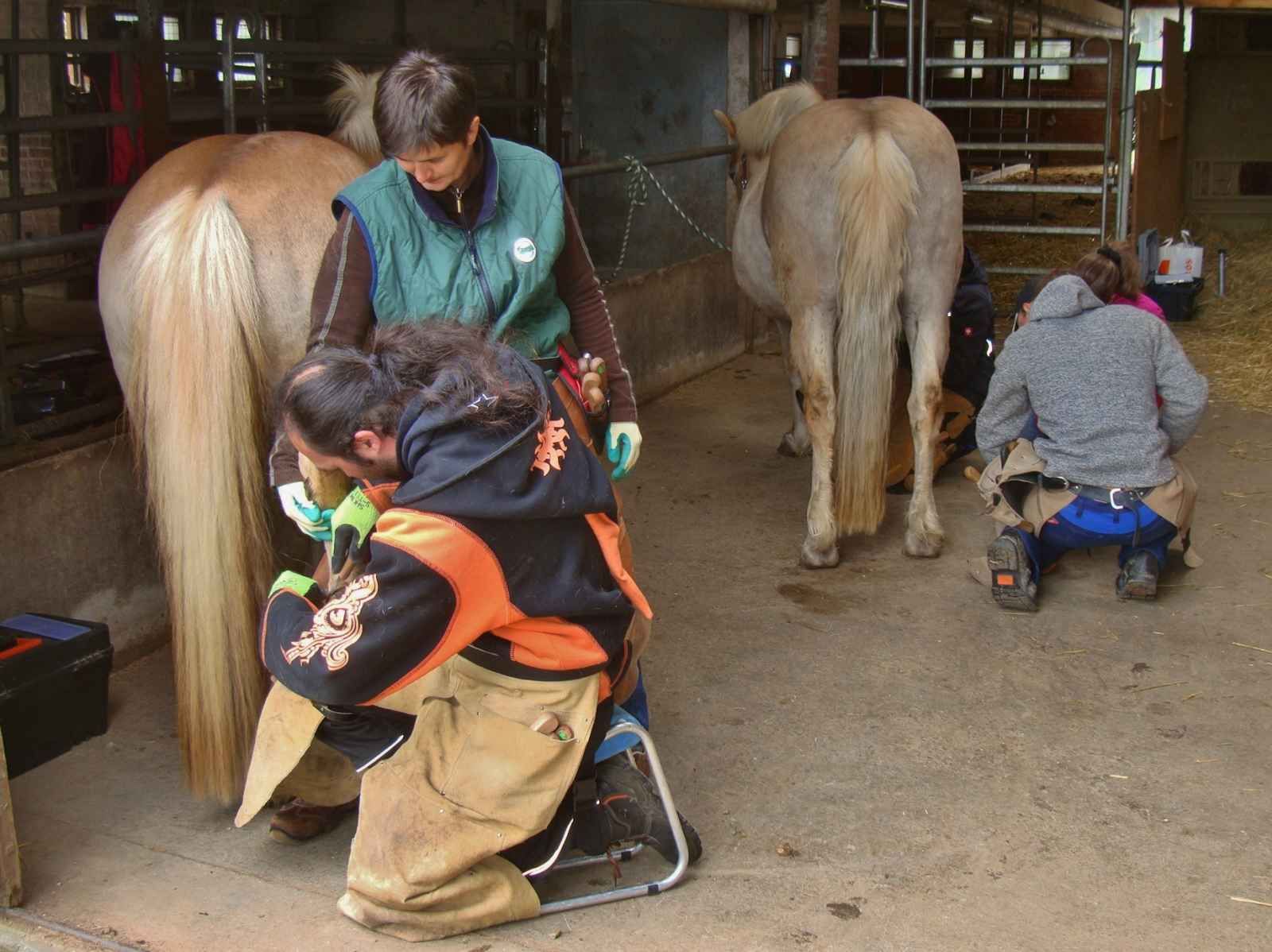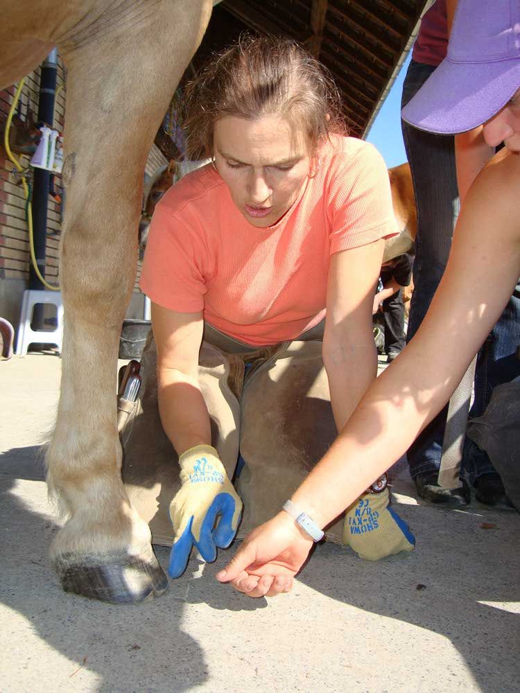 | Hufe befunden, Belastungssituation während der Standbeinphase | Angehende Huforthopäden/innen bei der Arbeit |